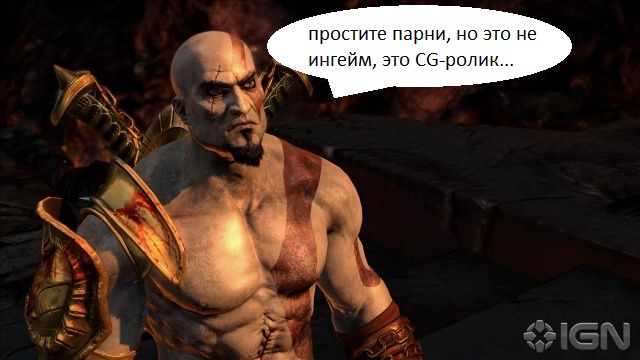 Пожалуй, никто, кроме самых убогих сонибоев, не верил что в God Of War 3 нет ни одного ролика, не смотря на клятвы разработчиков. Любой адекватный человек понимал что привету из прошлого PlayStation 3 такая картинка просто не по зубам, мощности у CELL просто не хватит обработать даже такую среднюю графику, ведь он даже траву не тянет!