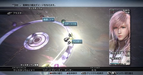 Система прокачки называется Crystalium и напоминает оную в FF10. В ней нет ни AP, ни XP, вместо этого есть CP (Crystal Point). CP даются после каждой битвы, даже если персонаж не участвовал в сражении. Но главная засада в том, что прокачка блокирована до определённых моментов сюжета. Так что, тупо мочить монстров и качаться безгранично вы не сможете, упрётесь в отсутствие определённого кристалла, который можно получить двигаясь дальше по сюжетной линии.