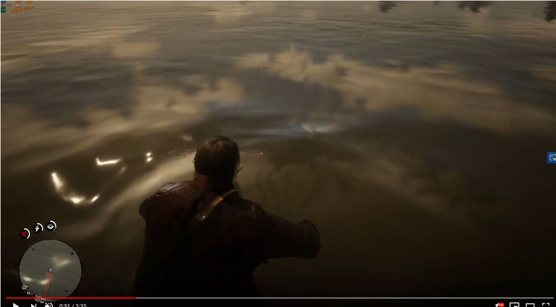 2) Когда Артур забегает в воду, на минималках не возникает волны, она никак не реагирует на персонажа.