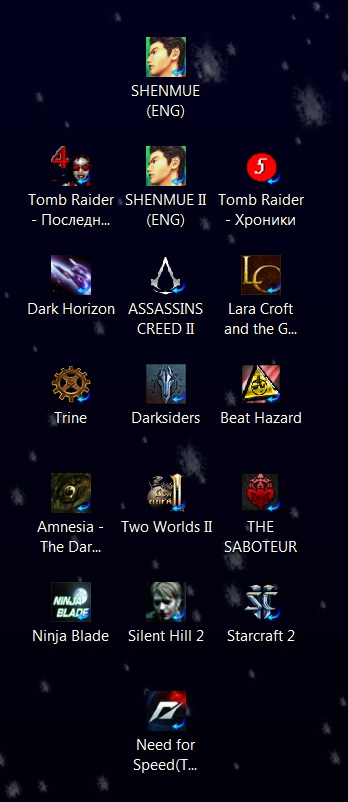 А у меня их нетутеперь повторяй эту фразу каждый раз, когда будешь смотреть на единственные иконки СтарКрафт2 и Сталкер на своем мониторе![]()