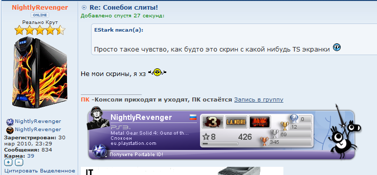 Сказал человек, который имеет 2504 сообщенияkolombo писал(а):как же меня радует , что пекари не скрывают того факта, что они целыми днями фотожопят скрины из анча, монтирую ролики с дрейфейсом и еще всякой хуитой занимаются![]()