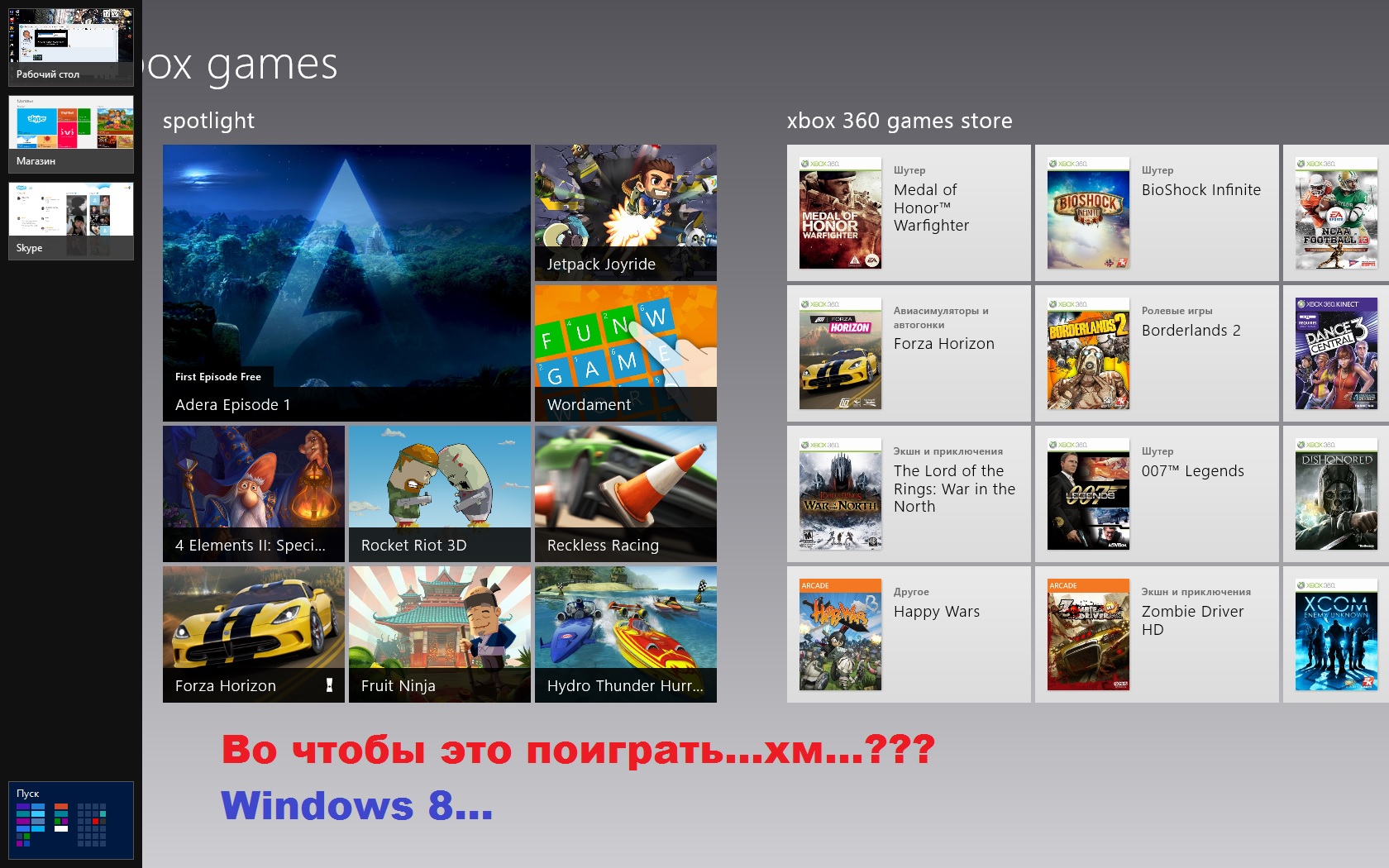Интересно ,а майки заставят пк юзеров переходить на лоскутные одеяльца винды 8,делая игры под эту ОС,или у них мАзгоФ хватит оставить поддержку xp и 7ки?