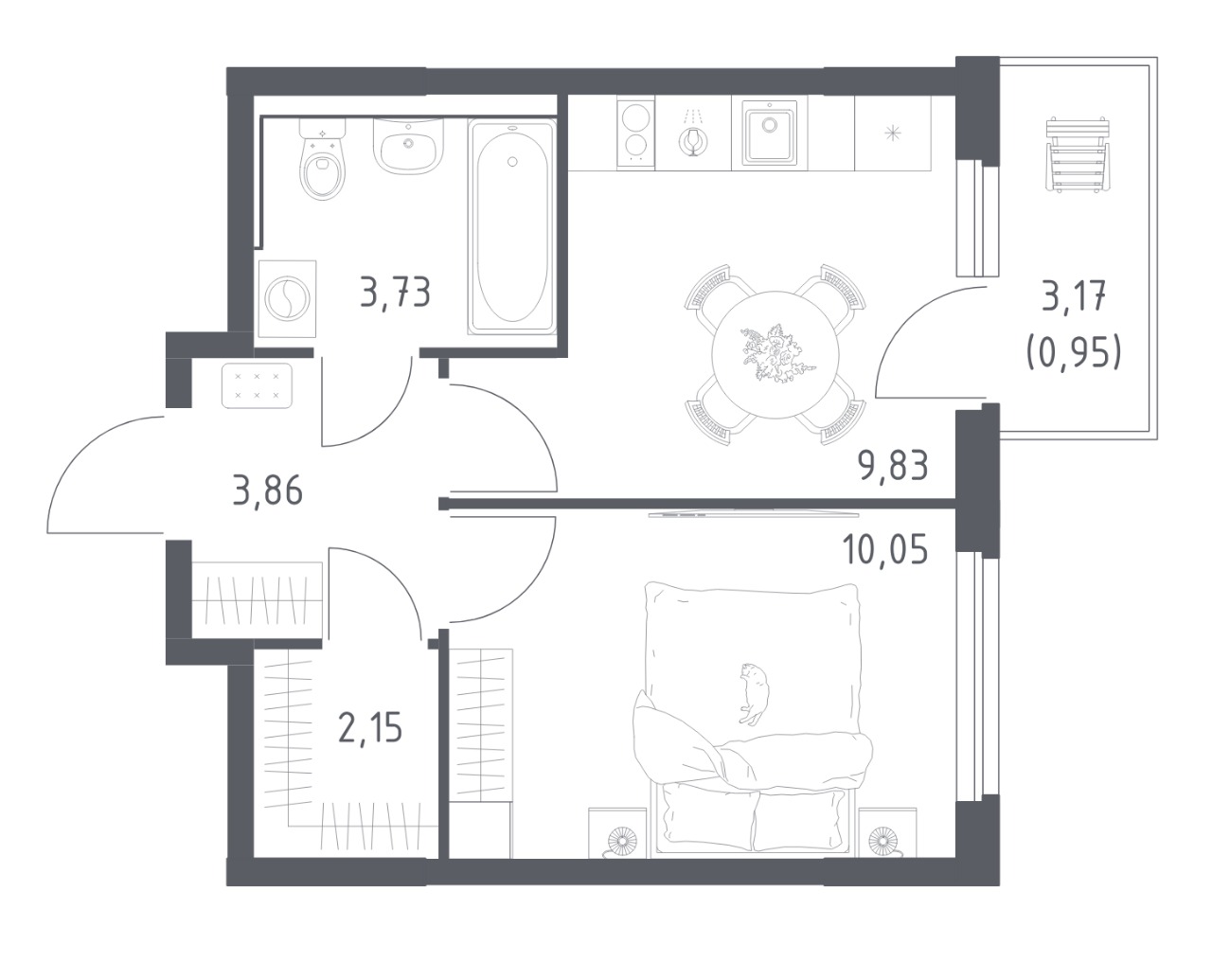 Балкон за 0.95 считают по понижающему коэффициенту, хотя реально там больше. 32,79 квадрата полных, если посчитать балкон за 3.17, на планировке у балкона так и указано 3.17 ( 0.95 )