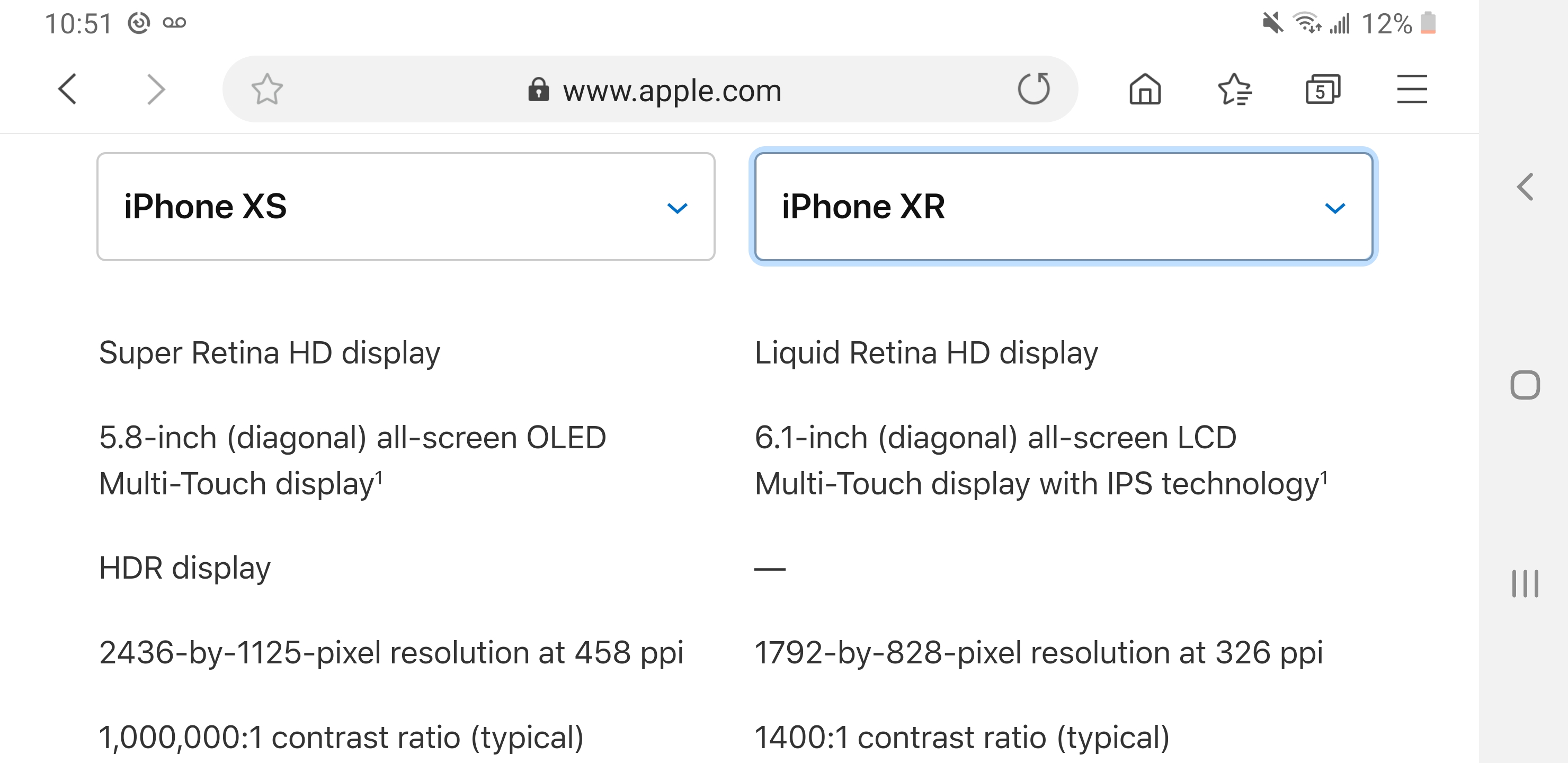 Есть хдр у экрана xs и его отсутствие у xr.