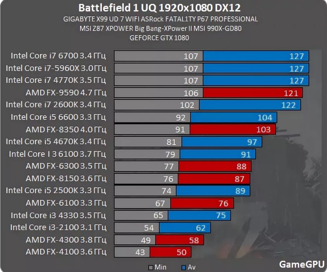 Банальный пример серия FX и ситуация в Battlefield, где провальный, по сути, процессор, выступает лучше более новых Core i5.