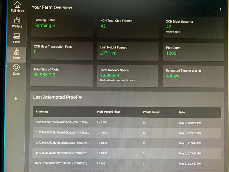 Я пока засеял только два с половиной терабайта, ноль монет. Два раза у меня слетал блокчейн ( пришлось дважды переустановить винду ), были синие экраны, баги с падением записи на ссд до 16 мегабайт в секунду ( вылечилось форматированием ), ожидание доставки с яндекс-маркета, по двое суток ожидание синхронизации после вылетов\переустановки. Только позавчера процесс пошел как следует, получается сеять до терабайта в сутки.