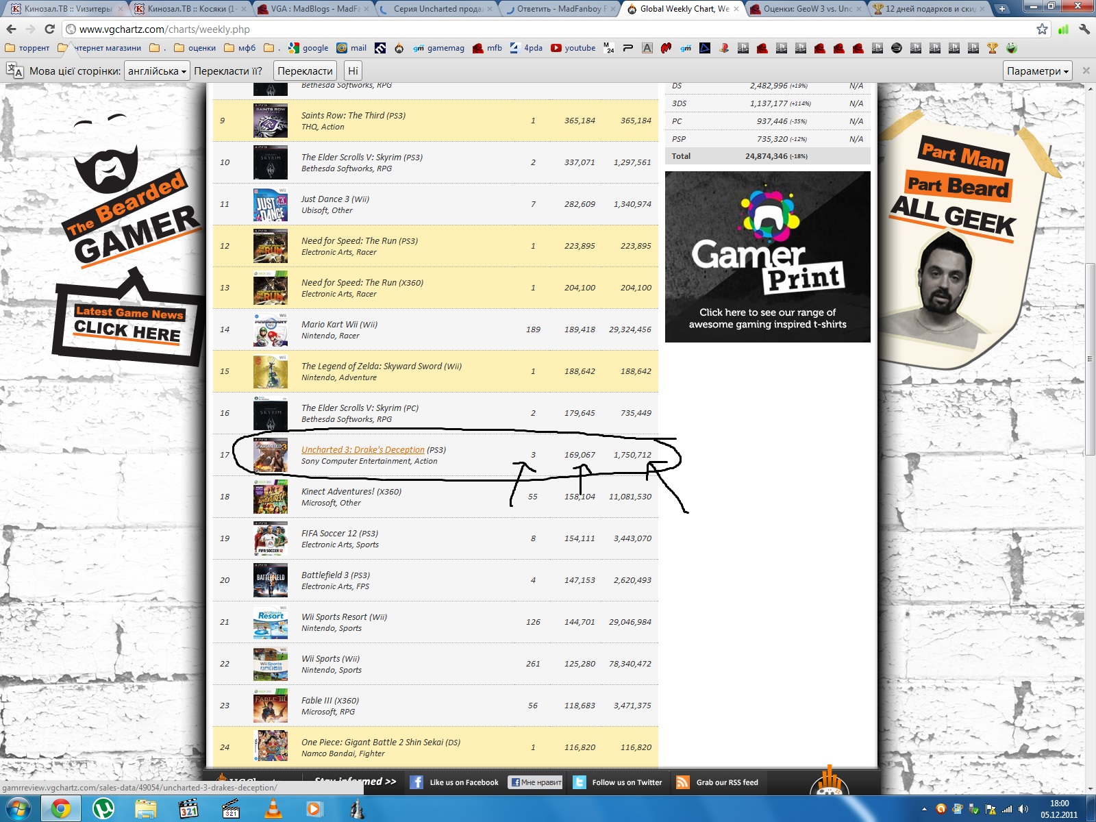 Ten Week Totals: 1,461,451 :joker:Uncharted 3 — 3.8 млн копий за первый день![]()