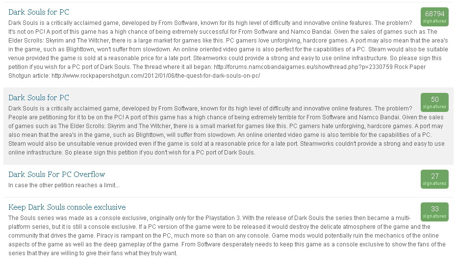 петиция чтоб оставить Dark Souls only on consoles
