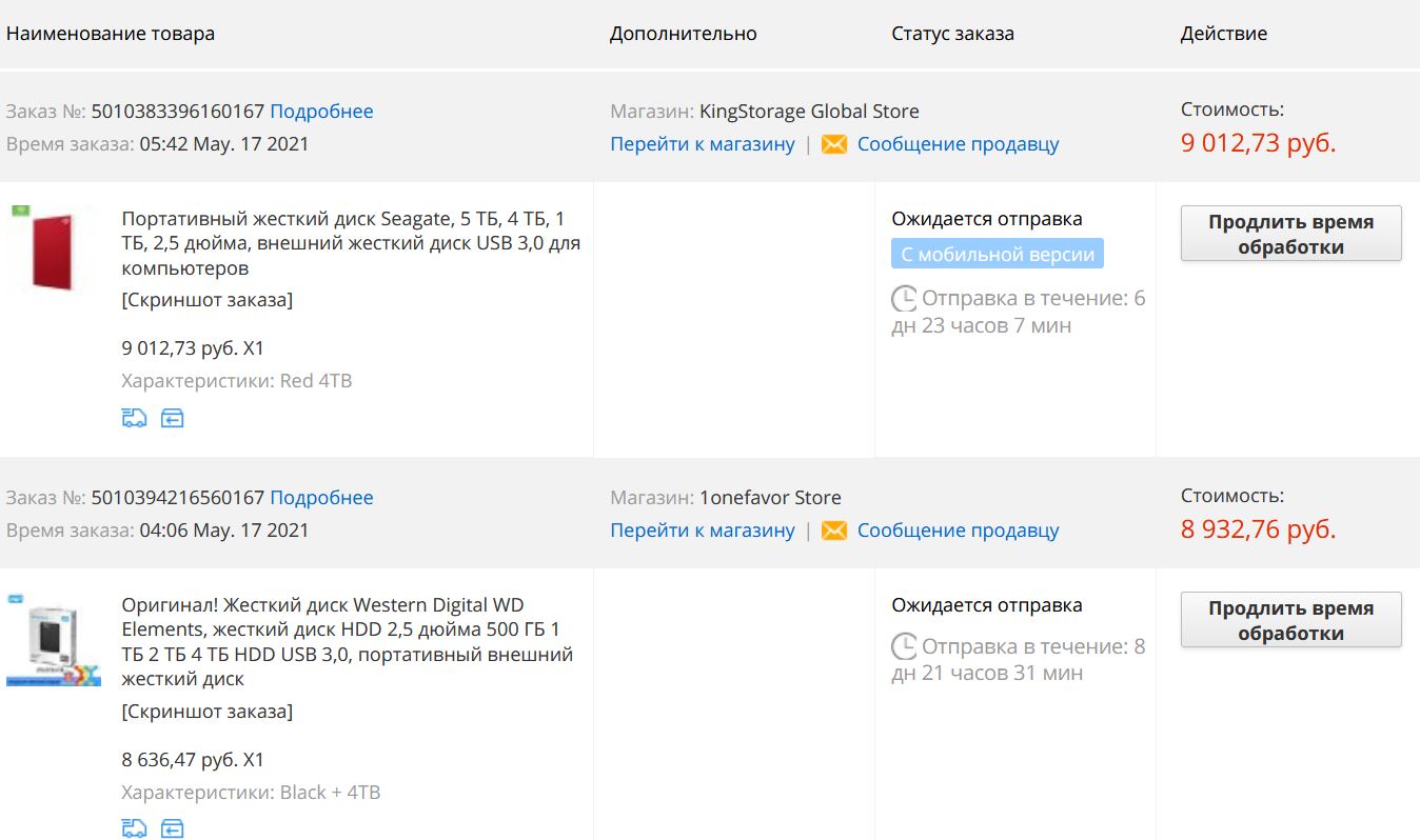 На алиэкспрессе распродажа и купоны с промиками, купил два по 4тб за 16к в сумме+кешбэки банка и летишопс. С учётом кешбэков выходит 1860 за терабайт. Ещё там были внешники на 5тб за 11к и внутренние харды на 3тб вд фиол за 6400. Цена на скриншоте не учитывает промокод.Unsteelix писал(а): 17 май 2021, 15:56вернули бабки за 8TB после 2 недель подготовки к отправке. В итоге НИХУЯ Я НЕ КУПИЛ![]()
