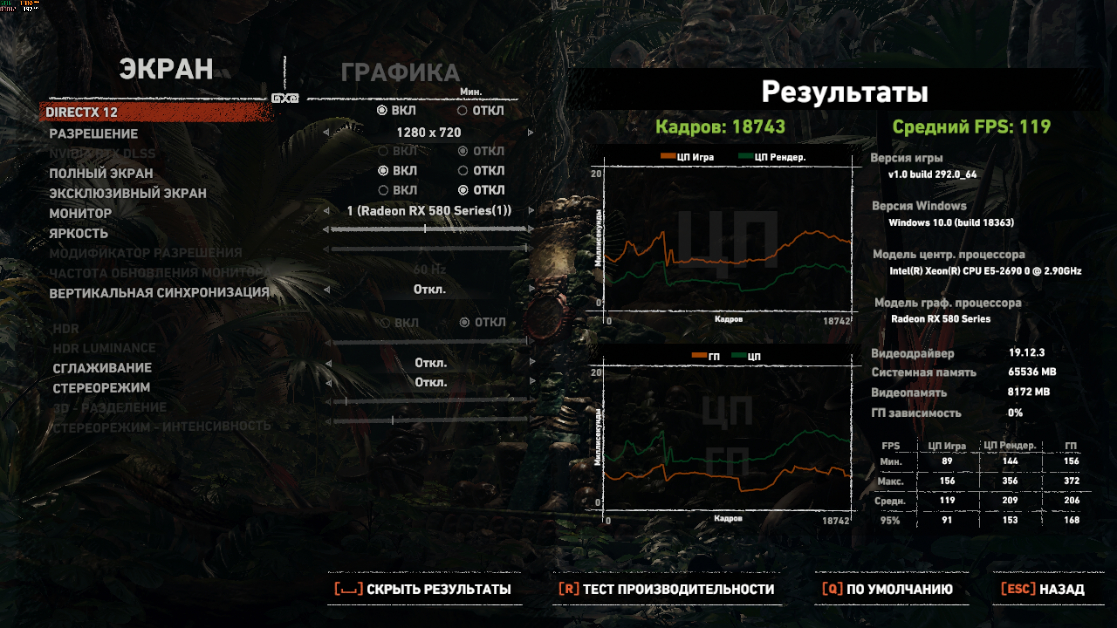 получил что если 100% упор в ГПУ то просадки будут в правой колонке (GPU render). мин - совсем минимум. 95% - это минимум без супер редких минимум.