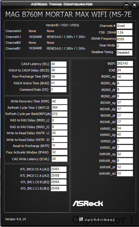 Firex, поднял бы tREFI хотя-бы до 32к