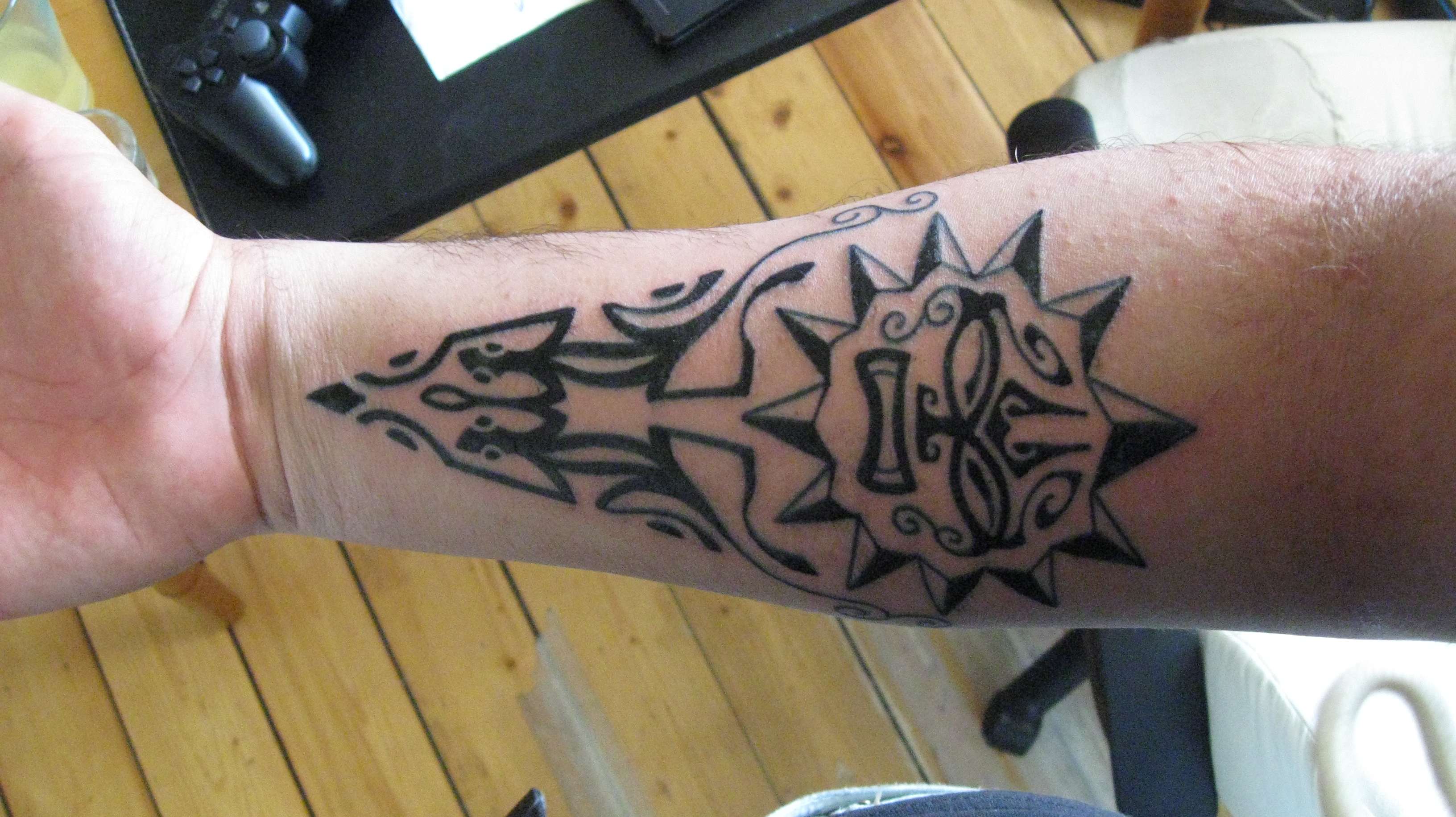 сам рисунок это дело вкуса конечно (хотя мне не нравится), но вот геометрия действительно отстойная, совершенно не для руки, особенно в районе запястья. Хотя в таком месте сложно сделать нормальное тату.Geman писал(а):Уже выкладывал в другой теме, но коментов не последовало![]()