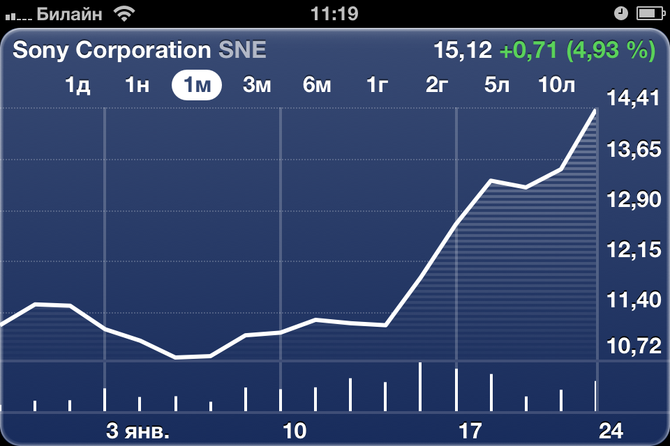 В прошлом году мы все помним как Sony понизили во всех рейтингах и призвали не покупать даже корешка от ее акций - крах и провал прочили ей на финансовом рынке со дня на день и... И аналитики просто обосрались с прогнозом. Взглянем наглядно на простейшие графики стоимость ценных бумаг японского гиганта: