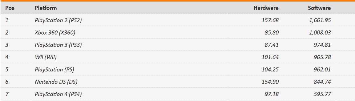 В итоге ПС4 отстаёт по продажам игр в два раза, а по доходам с игр ещё сильнее, если учесть инфляцию доллара в 19% за 10 лет и того что бюджеты игр растут. В общем ПС4, по всей видимости, уже никогда не догнать старушку ПС2, так как она на закате жизненного цикла и все ждут ПС5.