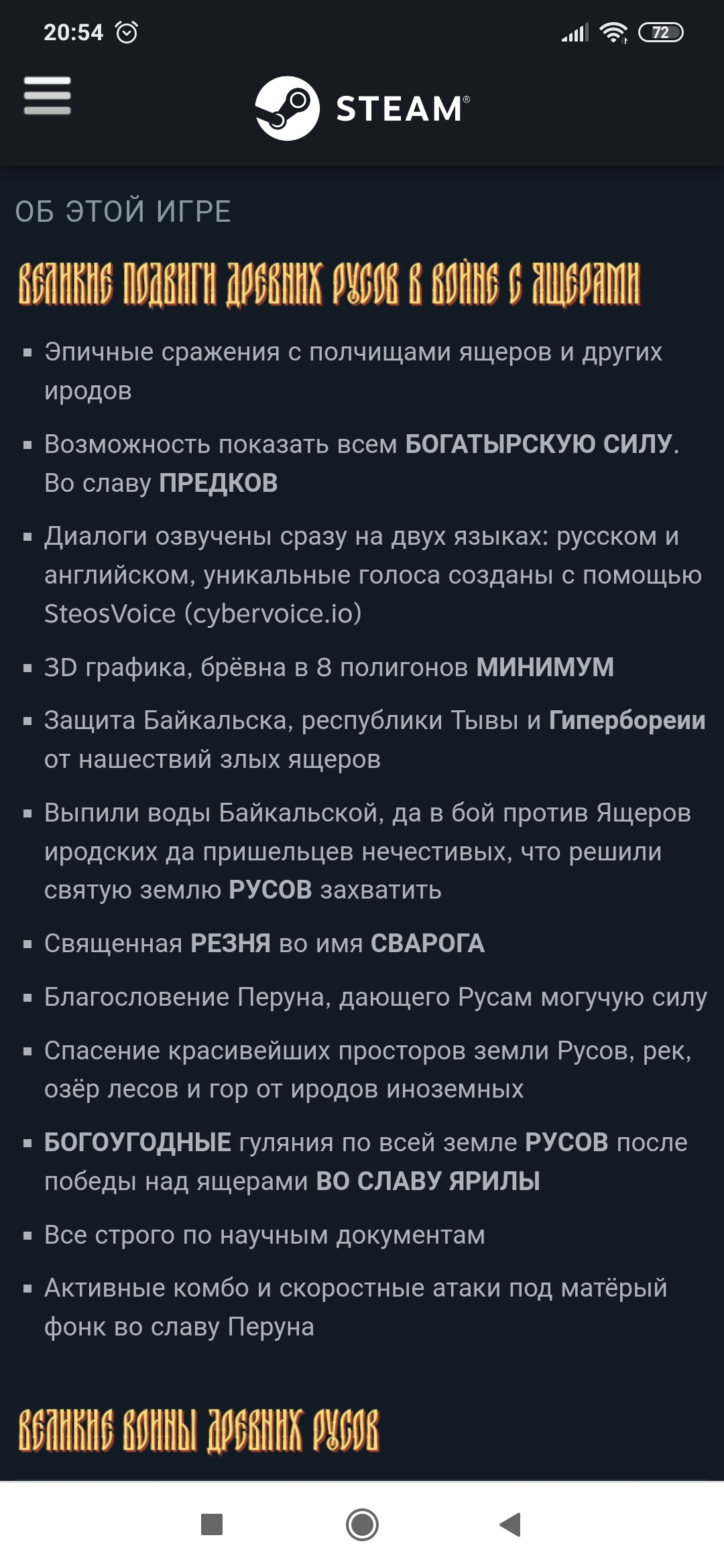 Шестое место в Стим, игра шедевр