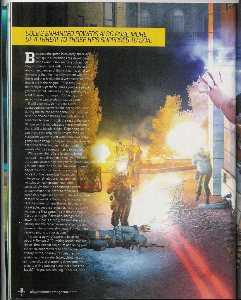 Одна из ожидаемых на PS3 игр - Infamous 2 - порадовала нас новыми подробностями о себе. 10 страниц в журнале Playstation: The Official Magazine содержат новую порцию информации, которую мы ждали еще с E3. Выжимки из статьи: