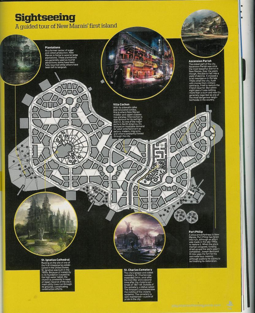 - Карта в статье показывает часть New Marais. Также на ней были обозначены 6 локаций, но пока не ясно можно ли будет исследовать здания в них, или они созданы просто для дополнения общей картины, как это было в первой игре. Их названия: Plantations, St. Ignatius Cathedral, Fort Philip, St. Charles Cemetery, Ville Cochon, и Ascension Parish.