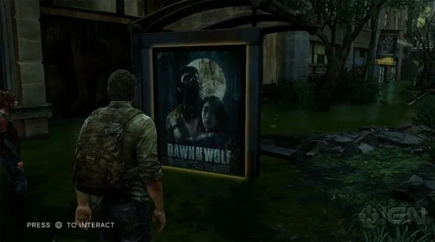 Актеры, озвучивающие Джоэля и Элли, записывали сотни различных реплик, так что их диалоги будут реагировать на все ваши действия и окружающую обстановку. К примеру, журналистам после Е3 показывали альтернативный вариант прохождения демо. В ней игрок нажал на треугольник рядом с постером к фильму "Dawn of the Wolf" (во время показа на Е3 2012 герои остановились перед этим постером, появилась надпись "Нажмите на треугольник, чтобы взаимодействовать с объектом", но это делать не стали). Так вот, в альтернативной демо герои стали обсуждать этот постер.
