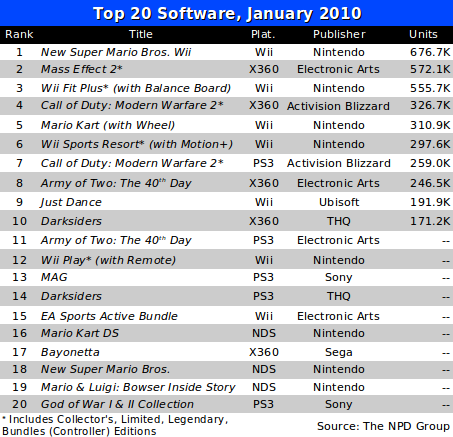 Был опубликован топ продаж от NPD за январь: