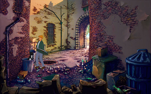 Но давайте вернемся к самой игре. Игра встречает нас потрясающими пейзажами осеннего Парижа, нарисованными в лучших традициях классических(не-CG) мультипликационных картин, которые как нельзя лучше передают романтичную атмосферу этого чудестного города. Каждый пейзаж нарисован с филигранной точностью и любовью, будь это величественный Храм Тамплиеров или обшарпанная подворотня с мусорными баками. Концентрация "души" в арт-дирекшене проекта просто зашкаливающая.