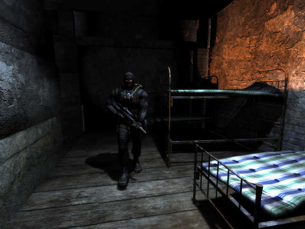 Далее, Сталкер к моему удивлению оказался не беги-стреляй шутером, а самым настоящим survival-стелсом от первого лица. Толстое дерево – лучший друг игрока, потому что просто стрелять во врагов НЕ из укрытия чревато быстрой смертью. Умереть тут можно (если не повезет) от ОДНОГО выстрела в упор / в голову. Кое-как защитится можно бронёй, которая портится и со временем становится бесполезной. Но и обратное справедливо – умелый стрелок может убивать с одного-двух хедшотов даже самых серьезно-экипированных противников. Кстати об оружии. Это первой мой шутер в котором оно реально чувствуется как оружие* – и по звуку и по механики стрельбы. Очень быстро понимаешь, что эффективнее стрелять как и в жизни - короткими отрывистыми очередями и не только из-за соображений экономии амуниции.