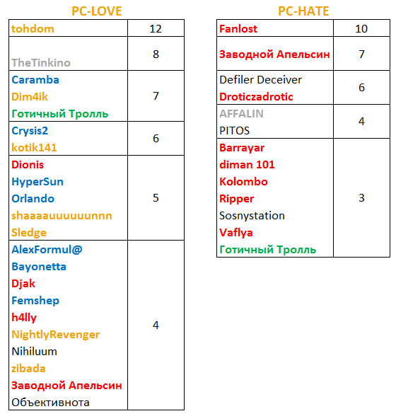 Итоги MadРеспекта. В конце года форумчанам было предложено выбрать самых уважаемых и самых ненавистных участников форума.