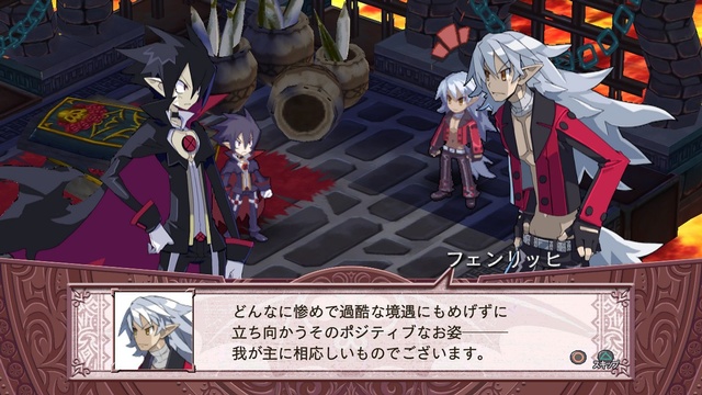Впрочем сюжет в этой игре не главное, но всеже довольно интересен. Основная фишка сюжета это высмеивание штампов РПГ, об "очередном главном герое который спасает мир", подается он постоянно с юмором, нотки серьезности могут тут же сменится юмором и наоборот. Чего стоит хотя бы сцена когда Valvatorez и ко. приходят к маленькой девочке-демону по имени Desco, которая носит звание Final Boss, с ней приходится сражаться, шутка ли, я практически не качав персонажей, убил её с одного спешал приема главного героя. После чего эта девочка начинает плакать, а ошарашенный Valvatorez начинает её успокаивать, а также решает её принять к себе в группу для того чтобы научить её быть настоящим финальным боссом, который будет не по зубам ни одному главному герою ни одной игры. Та конечно же соглашается, в обмен на это помогая группе пробраться к их конечной цели - президену Ада. В общем сюжет не блещет, но за оригинальность и его подачу получает 7 из 10.