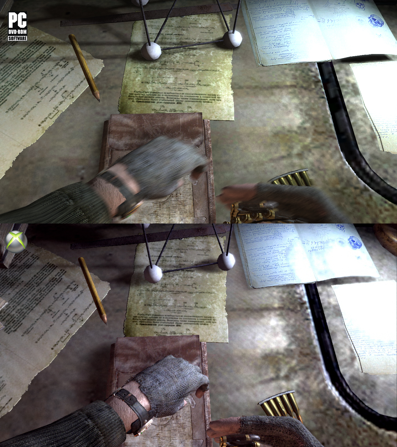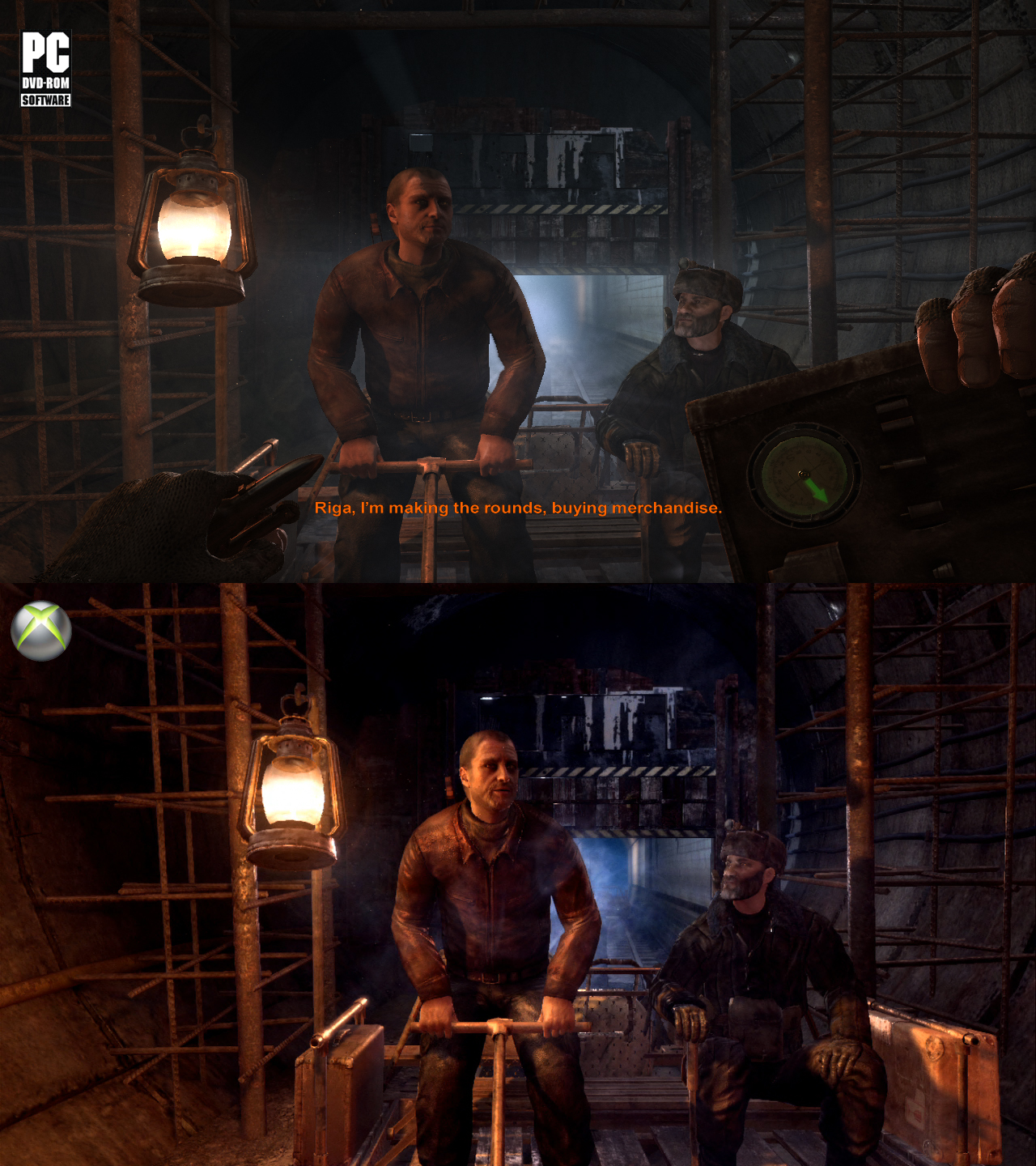 Слышал некоторые оранжевые пользователи говорили мол Metro 2033 на KingBox 360 по сравнению с ПК = ps2. Вчера сам лично поиграл и визуально выглядит также(до этого играл 1080p + High настройки). Разница только в текстурах, что в динамике вообще не заметно. Для убедительности: