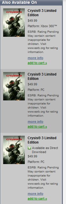Как подтверждают разные источники (VG247, allgamesbeta, GamesRadar и etc), Electronic Arts по ошибке опубликовала первую информацию о Crysis 3 в сервисе Origin. Ниже можно ознакомится с скриншотом сервиса: