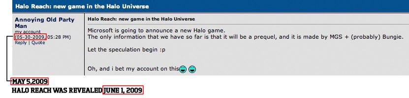 Благодаря такой чуда кнопки, как пиртскрин, они засняли посты некоего чудака под именемAnnoying Old Party Man, который, судя по первой картинке, сдал анонс Halo: Reach за месяц до конференции Microsoft.