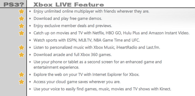 Вообще, у Xbox Live есть только 3 возможности, на которые PSN-у нечем ответить: