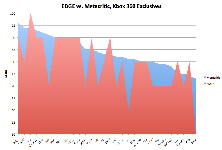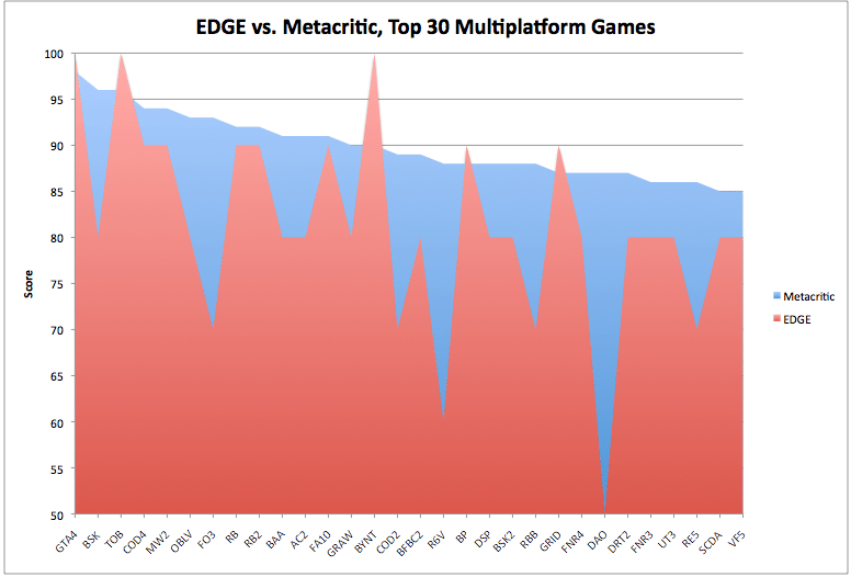 Синим цветом - средний балл по Metacritic. Красным - оценка EDGE.