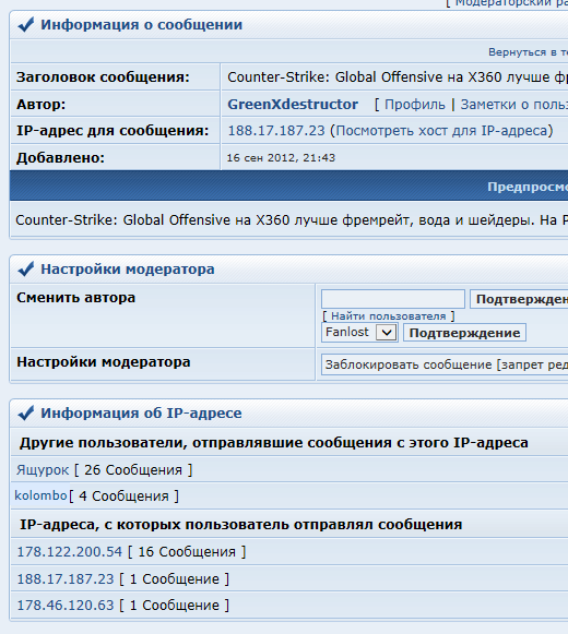 ну совпадение IP тебя и гваммера тоже никто не рисовалkolombo писал(а):прям как все мои пруфы