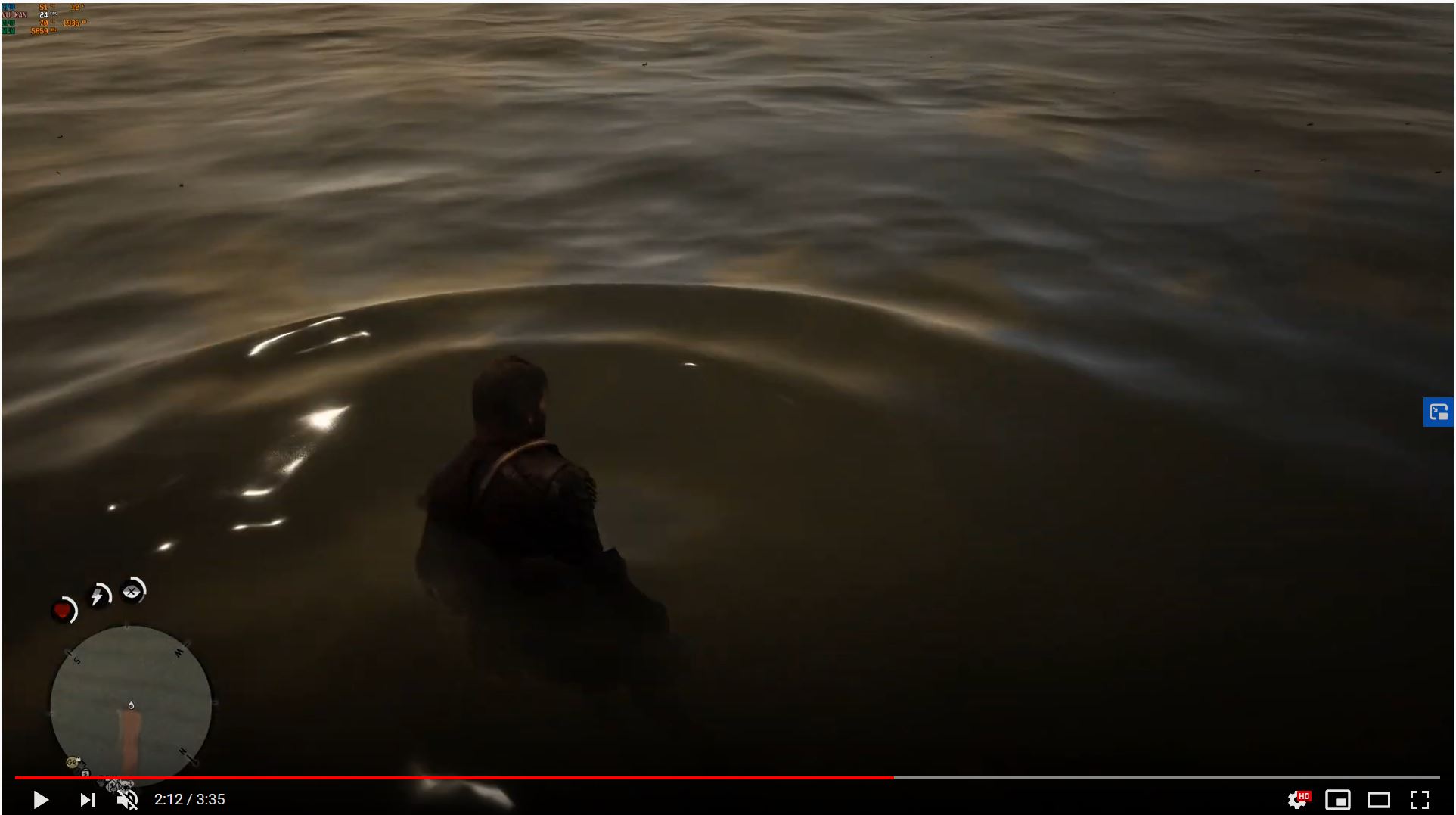 2) Когда Артур забегает в воду, на минималках не возникает волны, она никак не реагирует на персонажа.