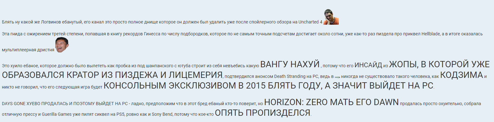 И перестаешь играть в новые видеоигры выходит автоматом?Fanlost писал(а): 04 дек 2019, 21:38так это в обратную сторону тоже работает, если меня что-то перестанет устраивать, я просто прекращаю заносить им деньги и всё.s_cream_y писал(а): 04 дек 2019, 21:37компаниям насрать на фанатов, главное прибыль и хороший отчёт перед акционерамиFanlost писал(а): 04 дек 2019, 21:23так это соничка нож в спину втыкает своим преданным фанатам, а не наоборотNewfag писал(а): 04 дек 2019, 21:05Такие вот предатели, как фанлост, в войну родину за кусок хлеба продавали![]()