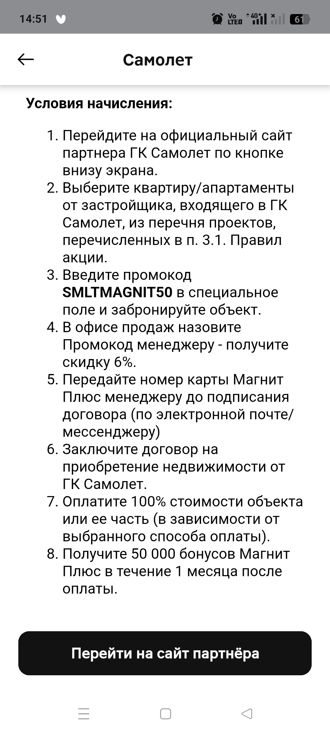 Решил купить квартиру по промокоду в рассрочку, скинул 300к промиком из приложения магнит доставки.