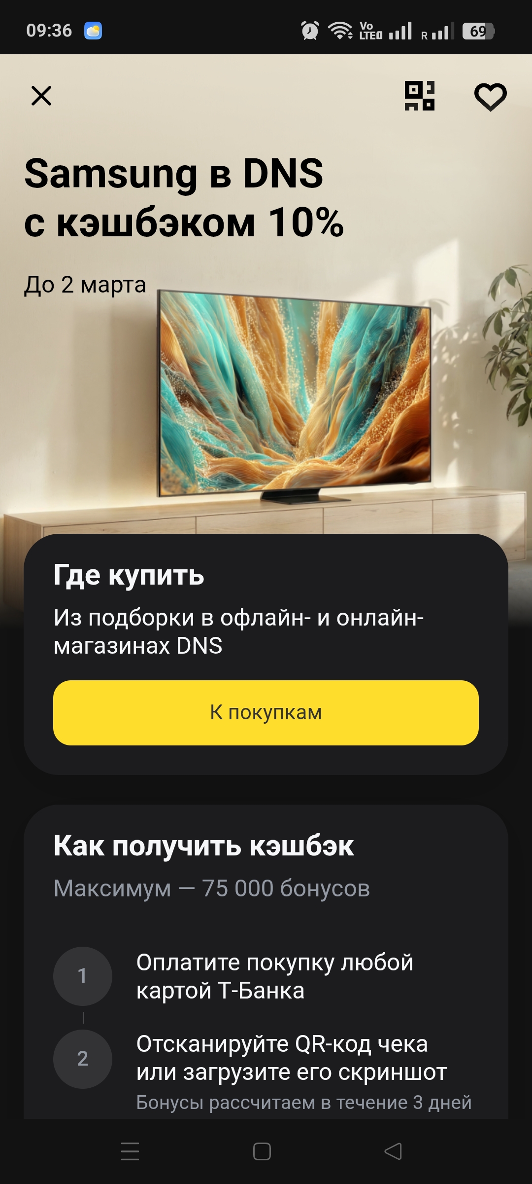 В т-банке может выпасть кешбэк-категория "шопинг" и через них оформить заказ техники в одном из магазинов ( матери выпало 10% ).Mister Book писал(а): 18 фев 2026, 08:02Chris, есть какие-то кешбеки на электронику (телек)? Я имею ввиду спецпредложения, как раньше ты писал, в определенном банке через определенную карточку...