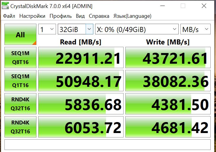 Это рамдиск, 128 гигов серверной озу стоят 16к рублей, из них можно 100гб отвести под рамдиск и получить скорость в 10 раз выше чем у ссд пс5Prosto_ya_5 писал(а): 02 июл 2020, 00:43Chris писал(а): 02 июл 2020, 00:40Объём накопителя виден справа. Диск X, 49 гб. Но это не предел, поставить больше памяти стоит недорого.Prosto_ya_5 писал(а): 02 июл 2020, 00:39Chris, говори на сколько ГБ твердотельный накопитель тесты которого ты скидывал![]()