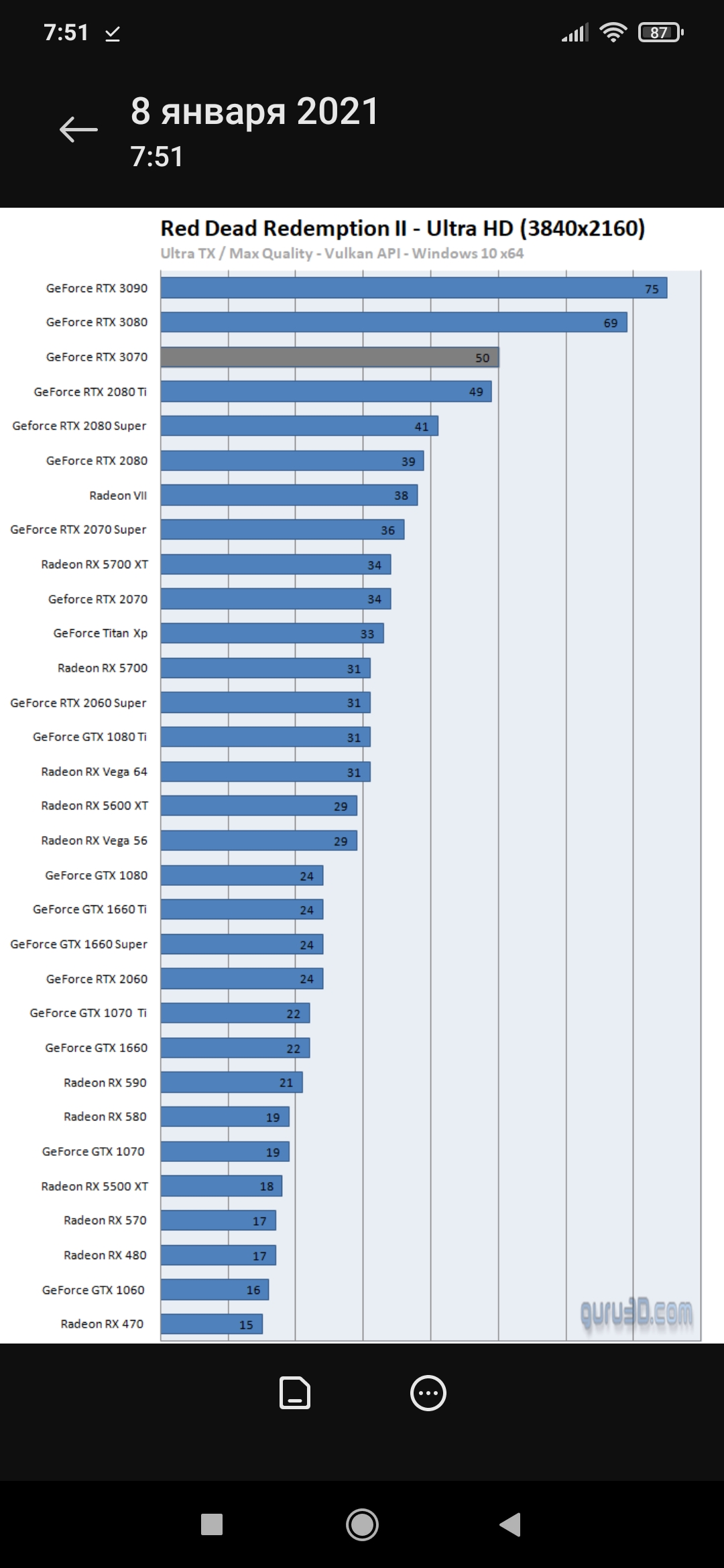 Прошка выдает ебаное мыло в RDR2 на минимально-средних настройках, а 3070 даёт настоящие 4К на ультрах почти в 60фпс.metallsatanist писал(а): 08 янв 2021, 08:14У прошки разрешение в 2 раза ниже (1920х2160) и настройки не максимальные.zeka456 писал(а): 07 янв 2021, 19:353070 даже пс4 про в три раза натягивает не всегда, ебать ты нафапал![]()