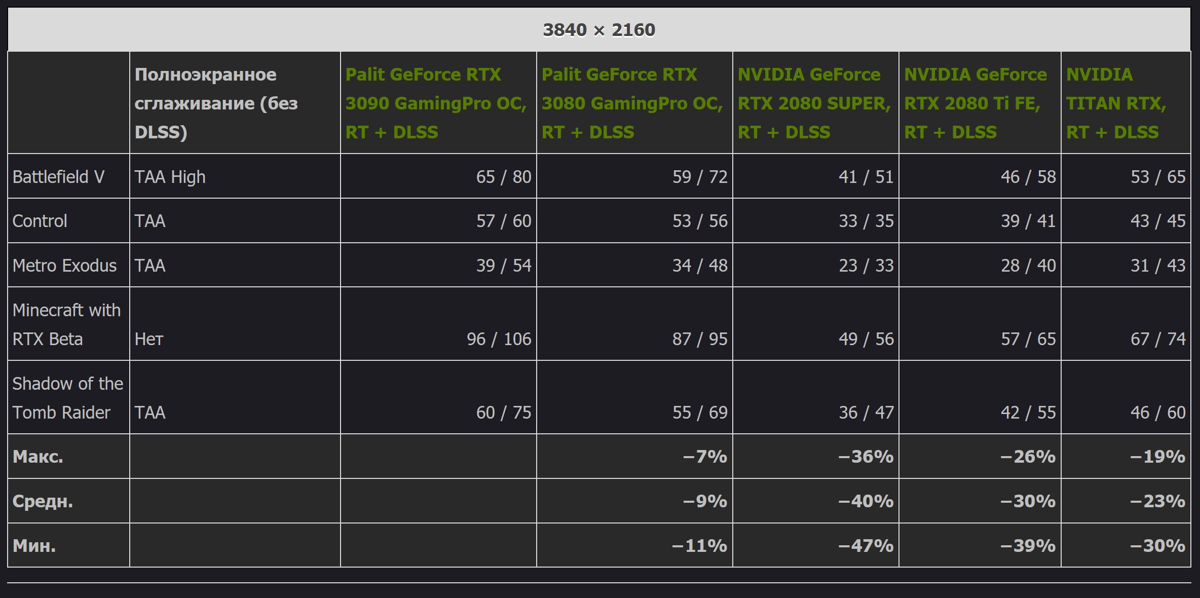GeForce RTX 3080 быстрее 2080 Ti всего лишь на 30%. А 2080s примерно на 50%. Nvidia снова обманула про двухкратную разни