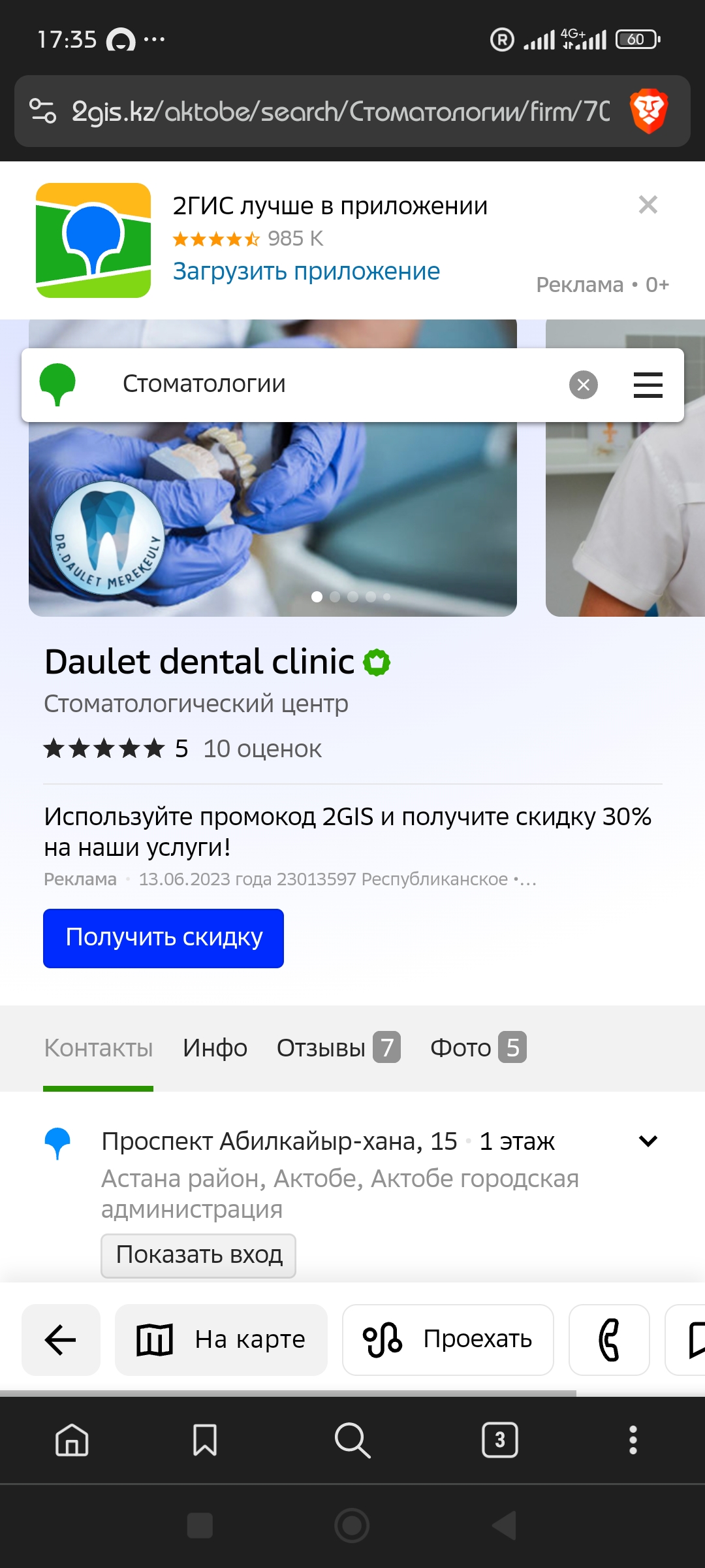 Решил почистить профессионально зубы перед "пешим эротическим путешествием" в Алматы, оказалось что стоматологии ( и не только они ) публикуют промокоды в 2GIS, и получил скидку+кешбэк по карте, уложился в 1444 рубля за трёхэтапную чистку.
