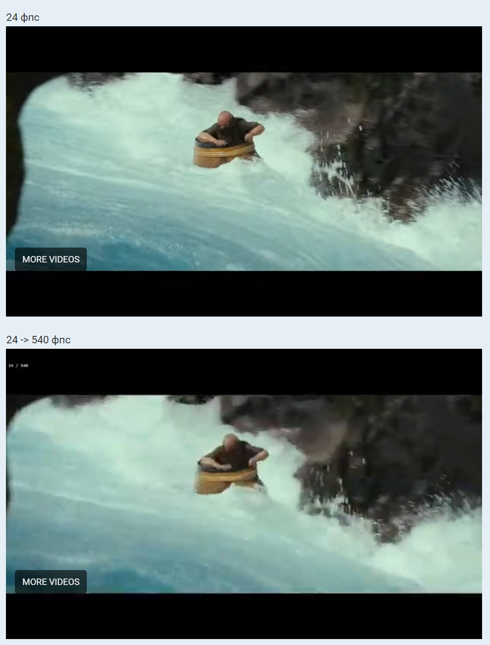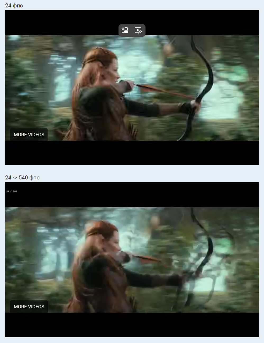 видно было и артефакты. если кадры мыльные и с артефактами. а в 24 чётче и без артефектов - то значит и в движении у тебя тоже быдет мыло. чёткость от мыльных кадров не появится. это не магия