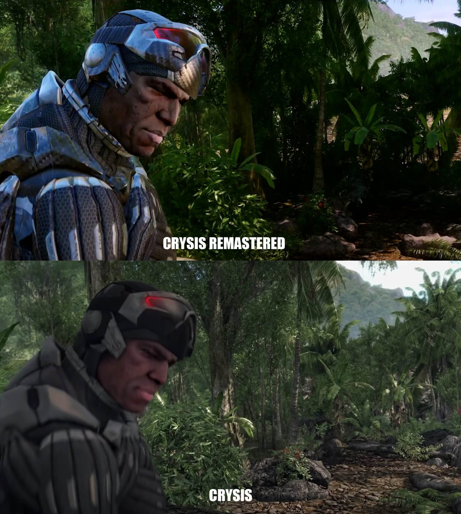 И тут сравнение не с ванилой нужно конечно а с оригиналом + лучшие моды графические - все эти моды доступны любому игроку в любое время, значит играть они будут автоматом со всеми модами для улучшения графики. Так что это за сравнение тогда такое, игрокам нужна новая картинка в ремастере именно по сравнению с самой навороченной версией Крайзиса 1 а не с оригиналом из 2007 года.
