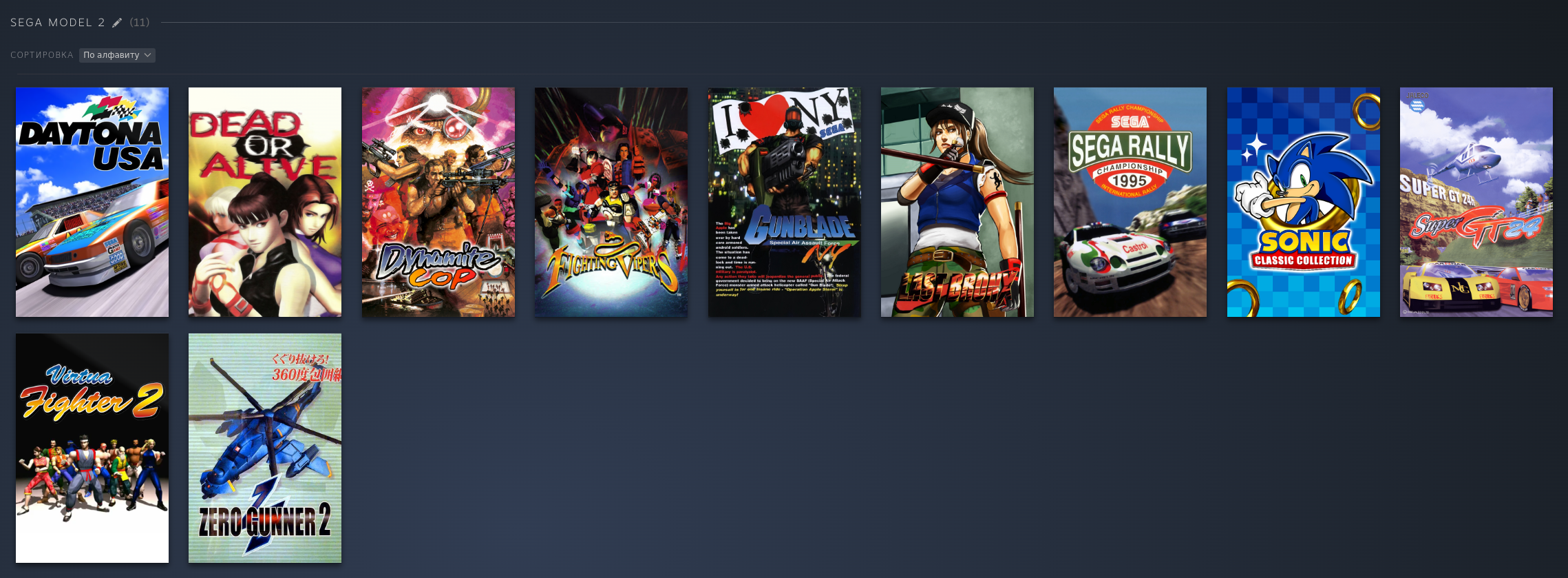 PS1: PSP: PS2: Dreamcast: Saturn: Naomi 1/2: Model 2: Model 3: GameCube: 3DS: DS: Nintendo 64: FinalBurn Neo (Arcade): Mame (Arcade), некоторые обложки не точные: Atari 2600: Atari Jaguar: Xbox 360, многие игры идут хорошо но до 2ч автономность, поэтому многое не добавлял как и с PS3: PC Engine: PC Engine CD: NES (Dandy): GBA: SNES: SNES HD (16:9): Switch: Wii U: 3DO: Philips CD: Sega 32x: Sega CD: Sega Genesis: Sega Master System: PS3: